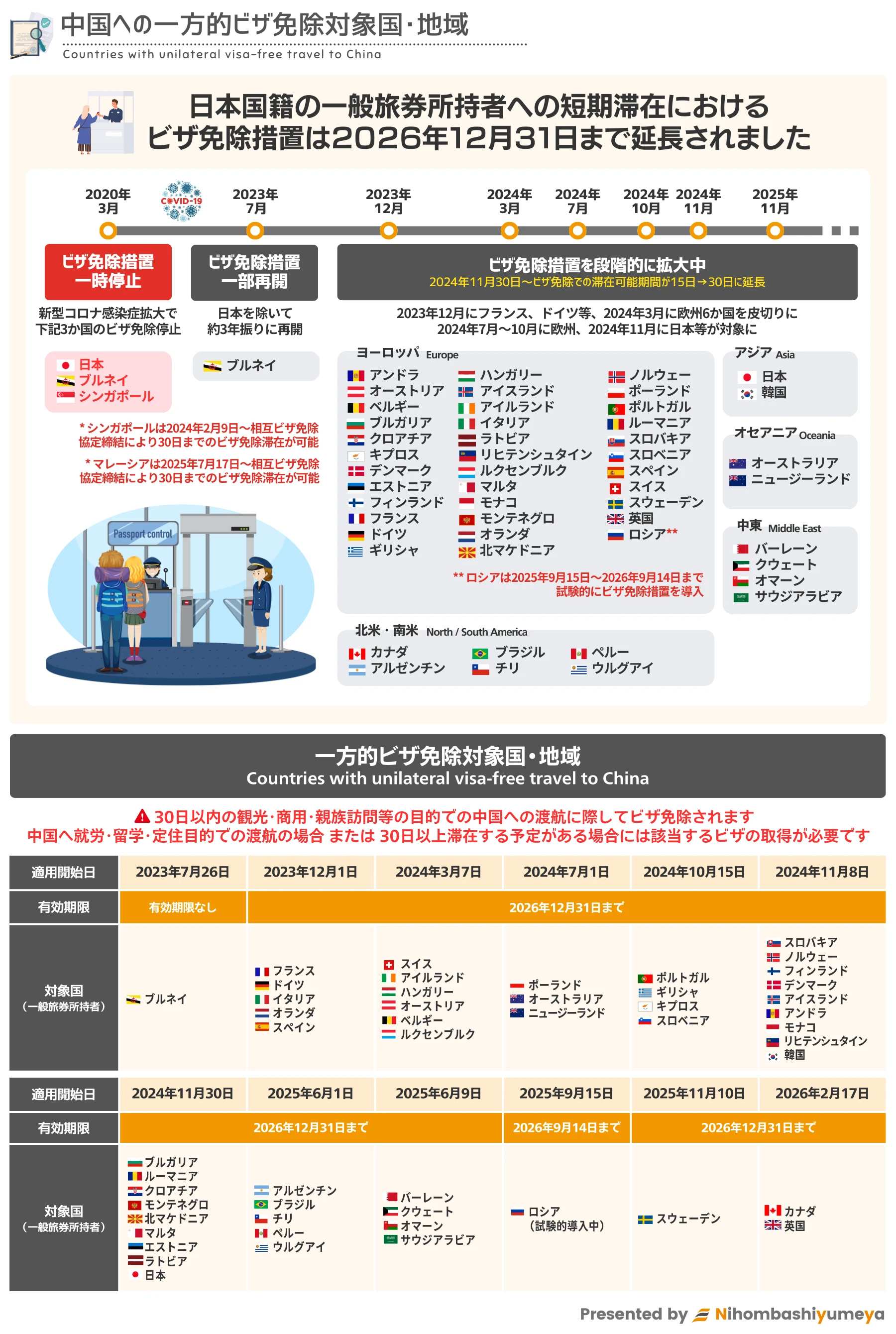- 2025.11.03 日本など45カ国のビザ免除措置を2026年末まで延長