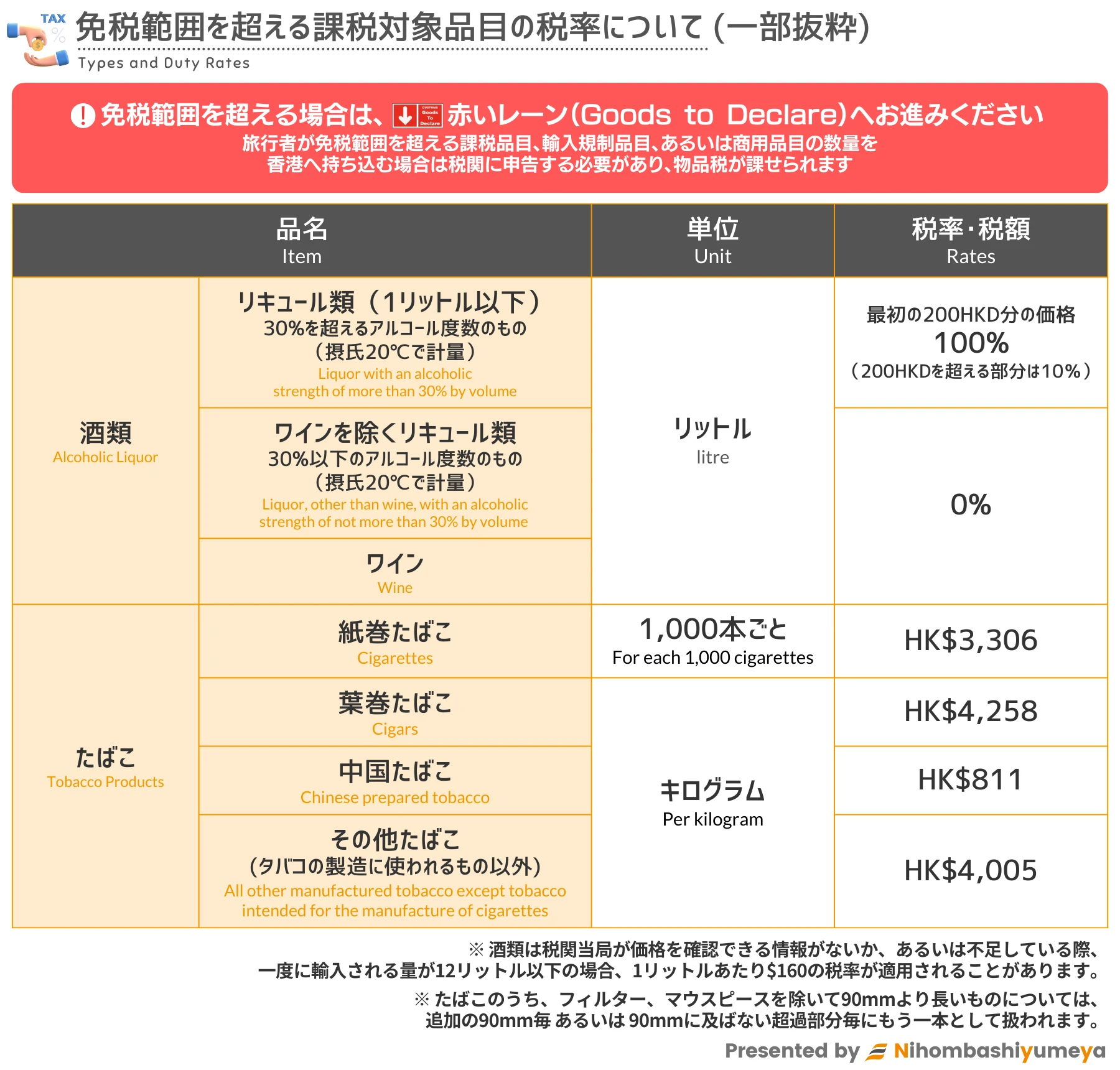 香港海関(Hong Kong Customs and Excise Department)|Types and Duty Rates