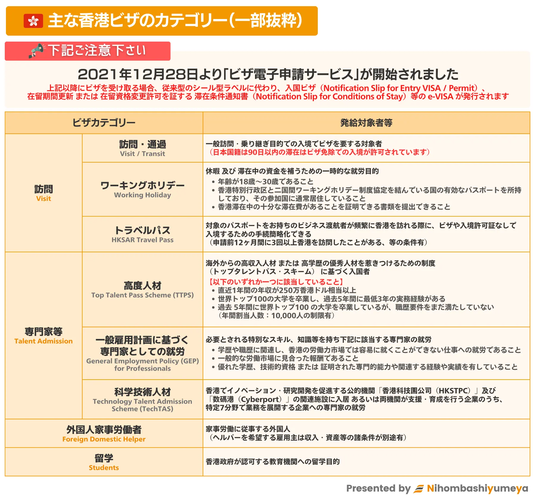 詳細な情報につきましては 香港入境事務處ウェブサイト からご覧いただけます。