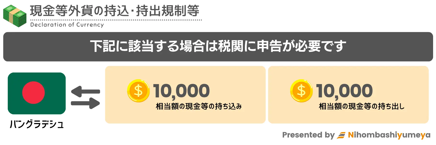 バングラデシュへの現金・有価証券等の持ち込み/持ち出しについて