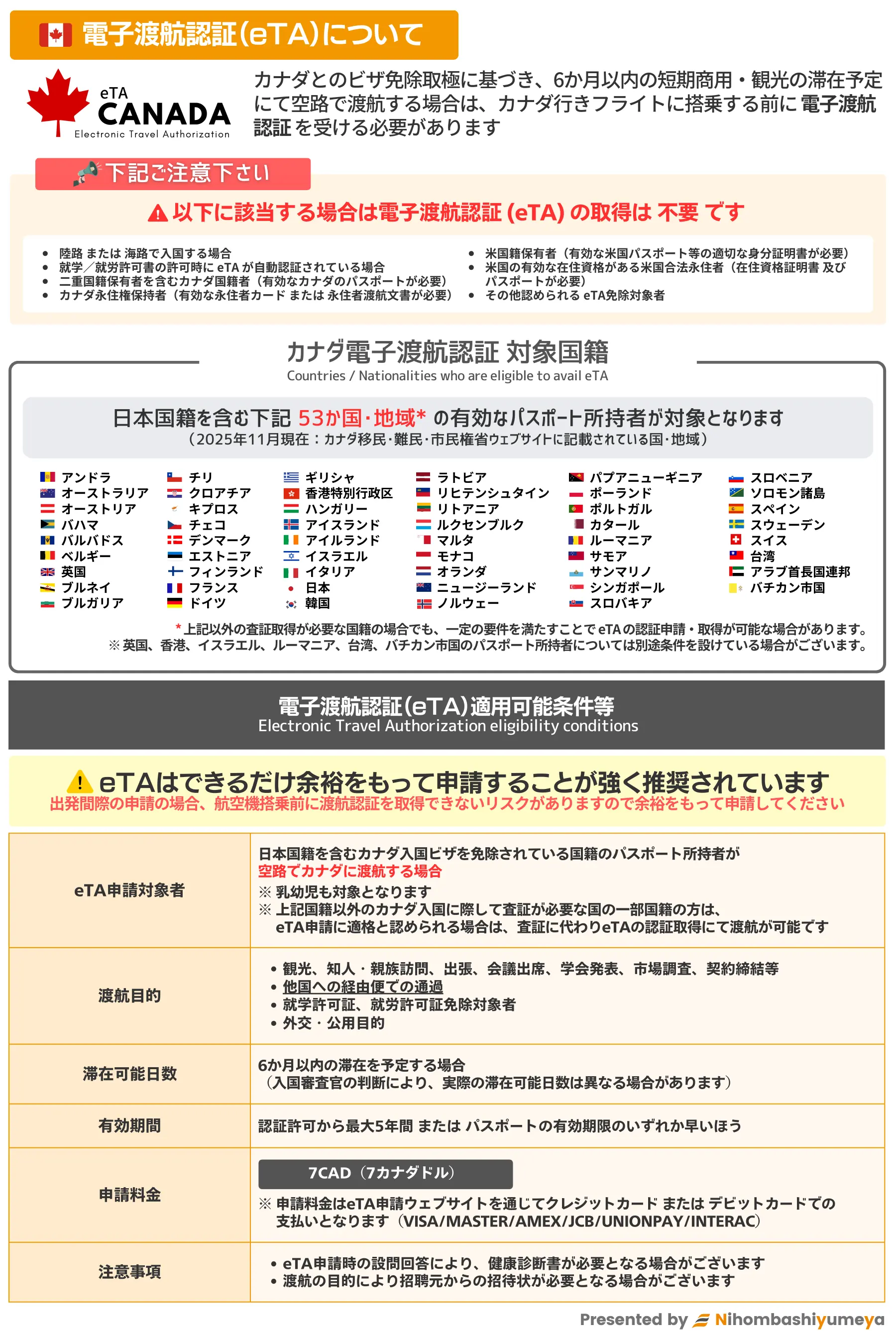 (日本国籍以外の方につきましては、カナダ政府公式ウェブサイト 等にてご確認下さい)