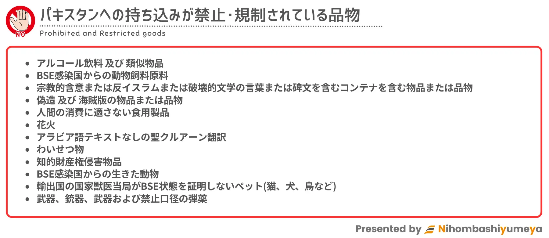 パキスタンへ持ち込み・持ち出しが禁止・規制されている物品について