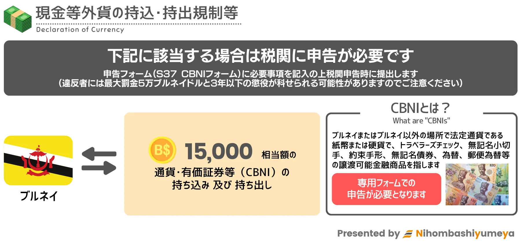 ブルネイへの現金等外貨の持ち込み/持ち出し規制