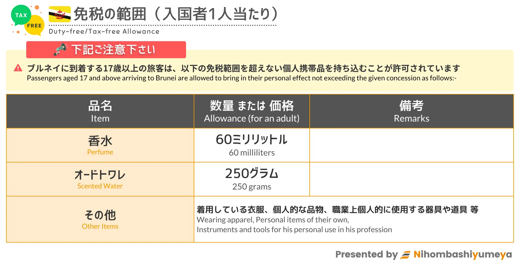その他詳しくはブルネイ財務省等にお問い合わせ下さい。