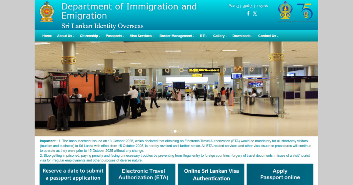 ETA 公式ウェブサイト:https://eta.gov.lk/