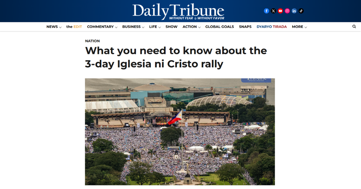 報道等によれば、11月16日(日)から18日(火)までの3日間、マニラ首都圏マニラ市のリサール公園及びケソン市のエドサ通りにあるピープルズ・パワー・モニュメントにおいて、大規模な宗教集会が予定されております。