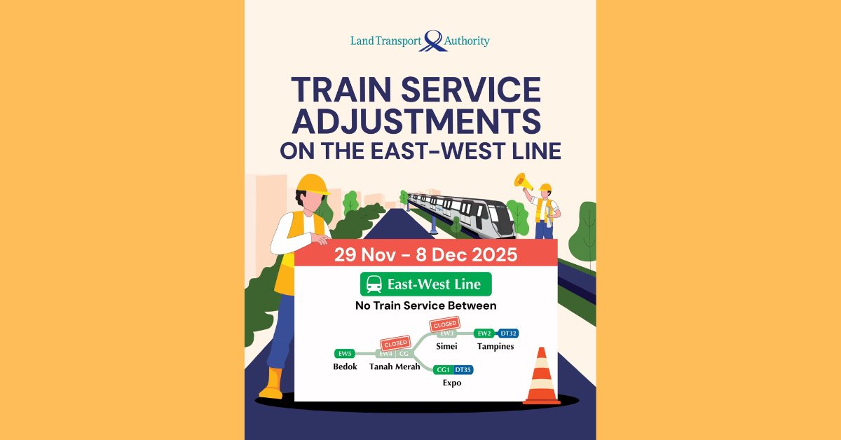 SMRT Coportation|Train Service Adjustments along East-West Line from 29 Nov to 8 Dec 2025