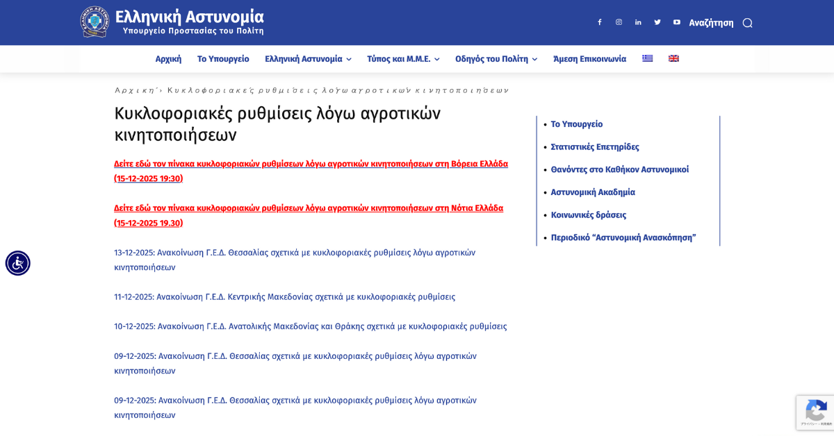 ・ギリシャ警察サイト「封鎖地点・迂回ルートリスト」(ギリシャ語) https://www.astynomia.gr/kykloforiakes-rythmiseis-logo-agrotikon-kinitopoiiseon/