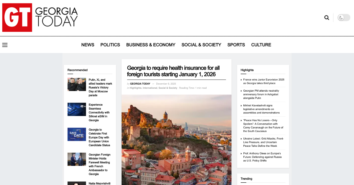 ジョージア議会は「観光法(Law on Tourism)」を改正し、全外国人旅行者に対する健康・事故保険の加入を義務化しました。