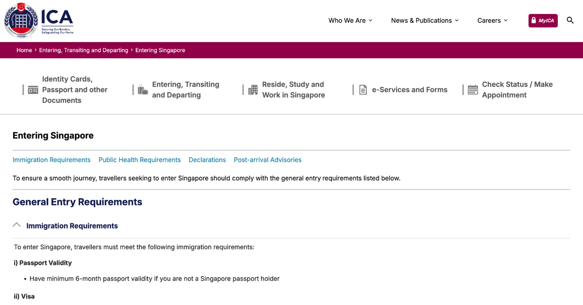 シンガポール|入国に要する旅券の残存有効期間等についての注意喚起
