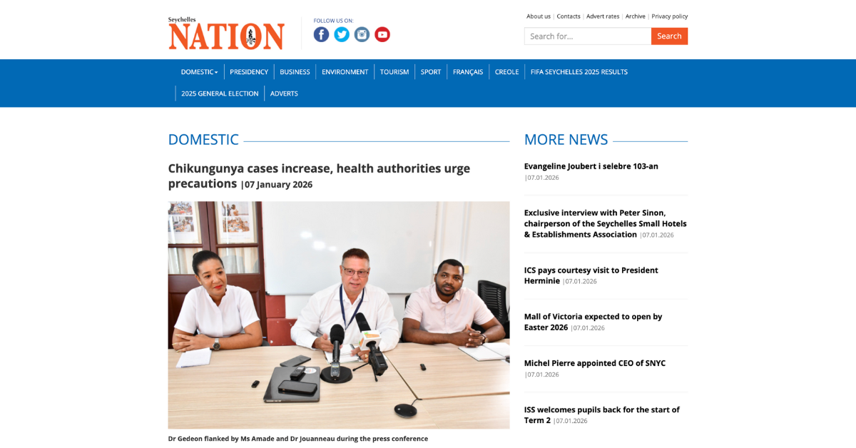 1月6日、セーシェル保健当局は、記者会見において、雨季に伴う蚊の活動の増加と関連して、2025年12月中旬以降、少なくとも20件のチクングニア熱の感染件数を確認しており、増加傾向にあるとして注意喚起を行いました。