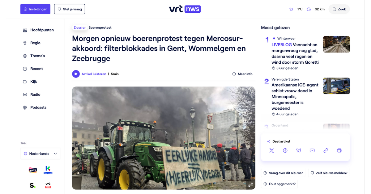 報道等によれば、1月8日(木)の夕方以降、主にベルギー南部の高速道路網がトラクターを使った農民による抗議行動のために封鎖される可能性があると報じられており、当地の道路交通網に影響が出る可能性があります。