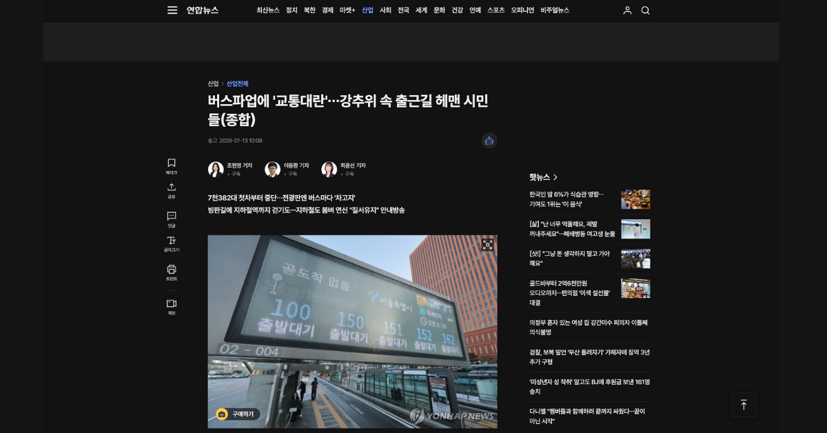 2026年1月13日始発からソウル市内を運航する路線バスでストライキが行われています。