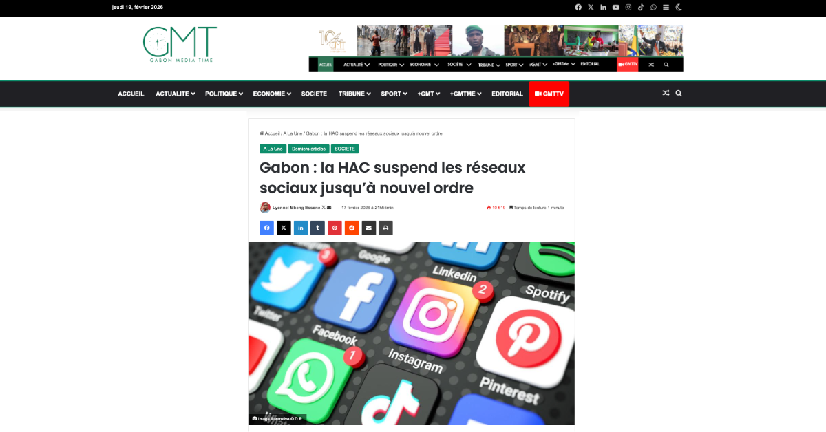 報道によれば、通信高等評議会(La Haute Autorite de la Communication (HAC))は、ガボン国内におけるソーシャルメディアの即時利用停止措置を発表しました。本措置は「追って通知があるまで」継続されるとされています。同評議会は、国家の安定や安全を損なうおそれのある不適切なコンテンツの拡散を理由として本措置を講じた旨説明しています。