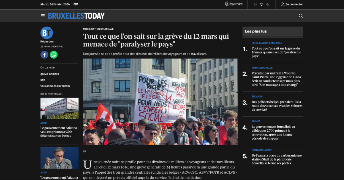 ベルギー|ストライキ・デモに関する注意喚起(3/12)