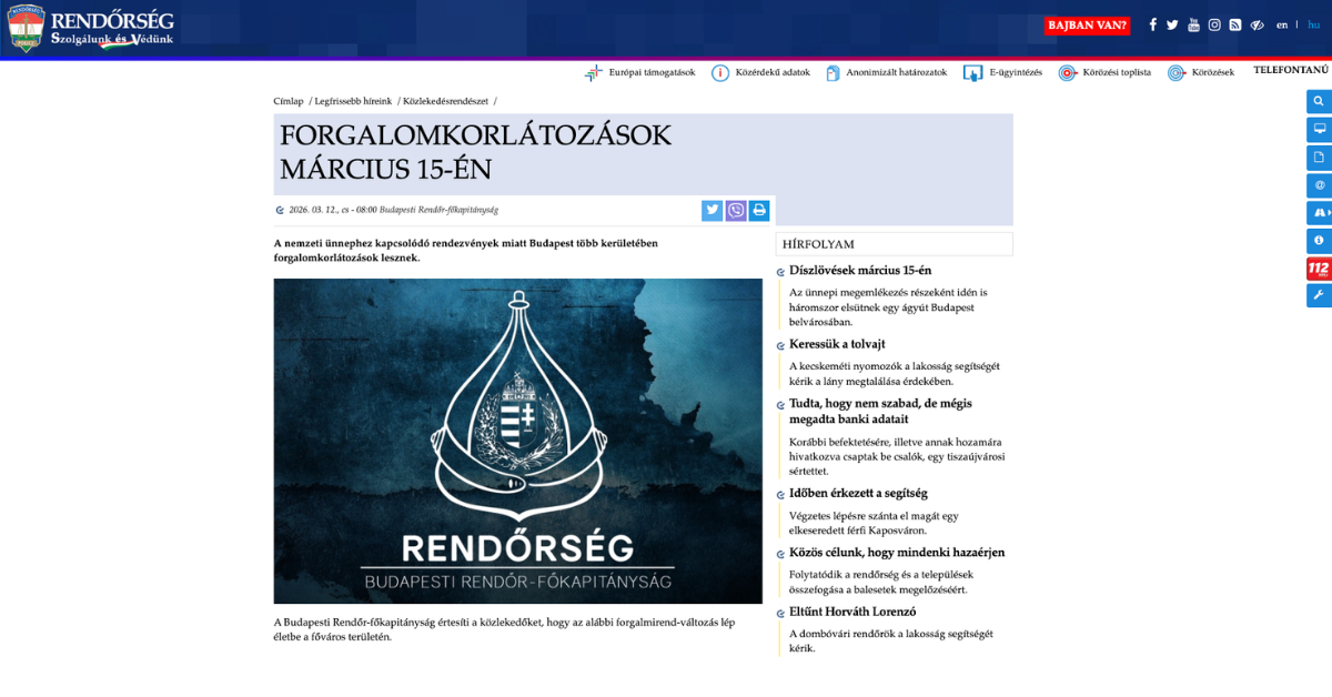 これに伴い、ブダペスト警察本部は、いくつかの区で交通規制を実施する旨発表しています。