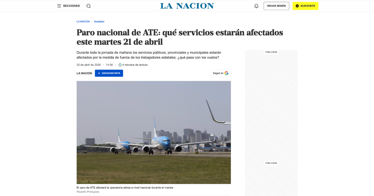 国家公務員労働者協会(ATE:Asociación de Trabajadores del Estado)は、2026年4月21日(火)0時から24時間のゼネストを実施しました。