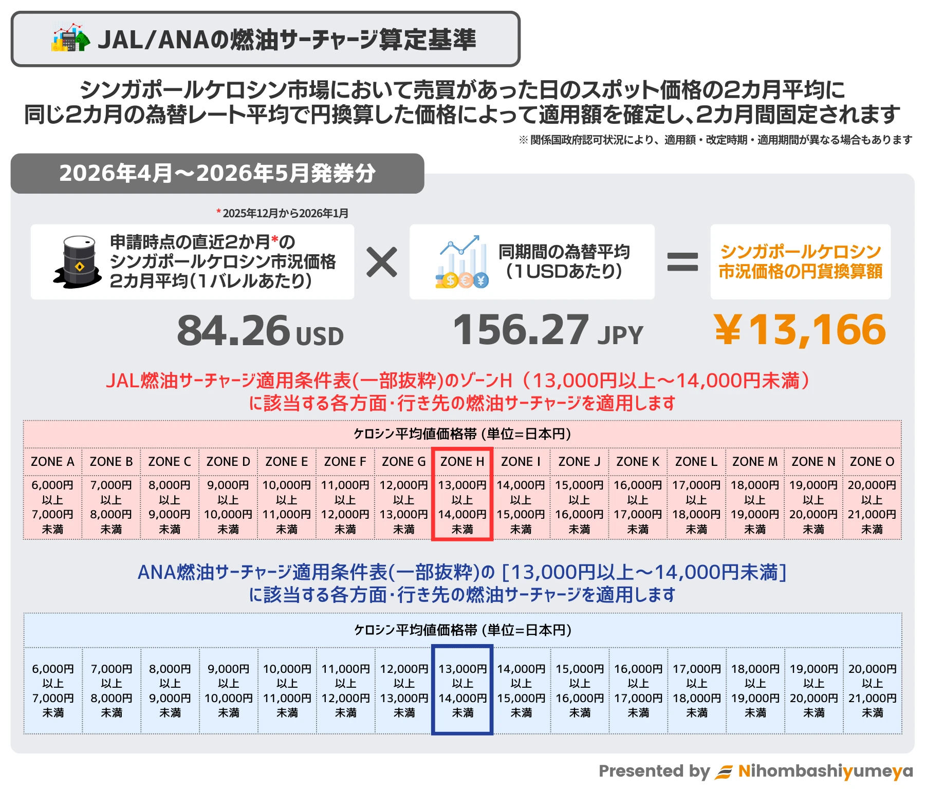 JAL・ANAの燃油サーチャージ算定基準