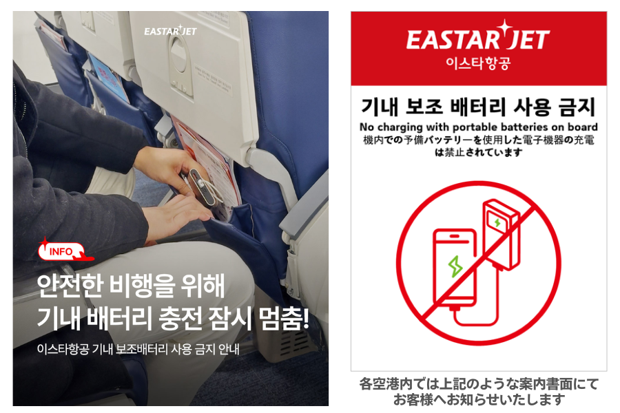 イースター航空フェイスブック|기내 보조배터리 사용 금지 안내(機内でのモバイルバッテリー使用禁止のご案内:韓国語)