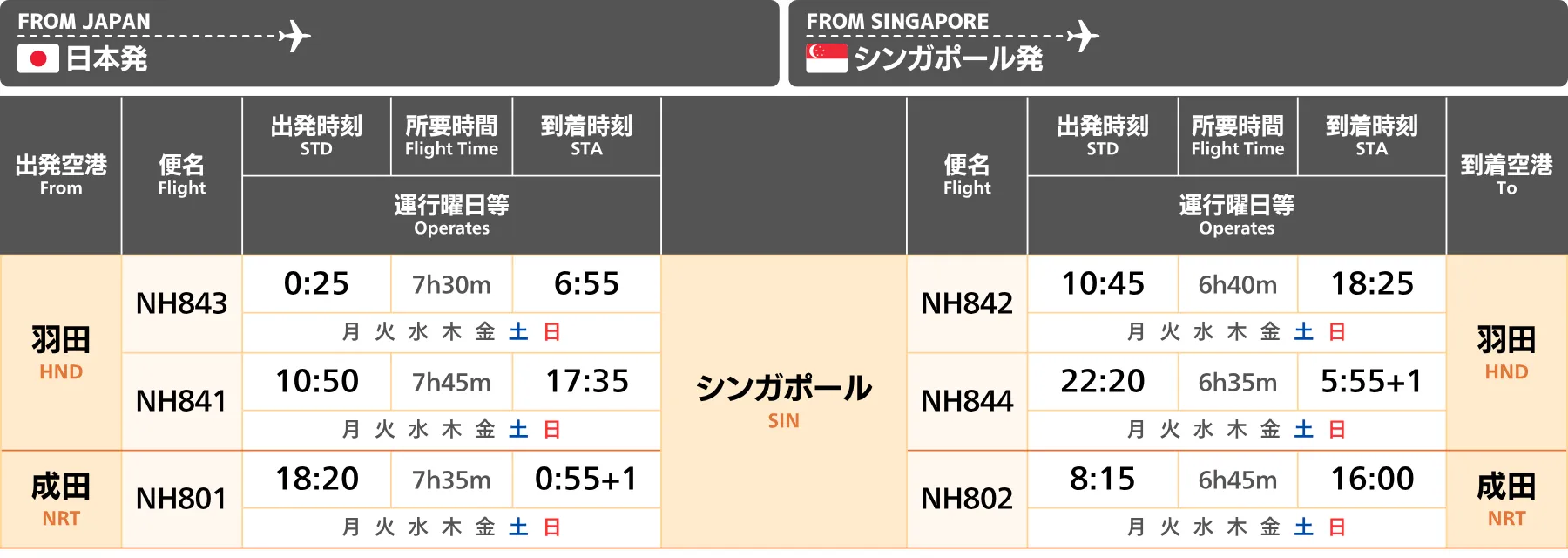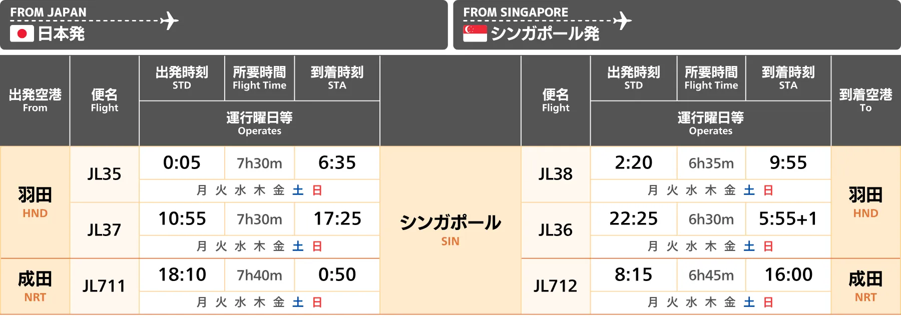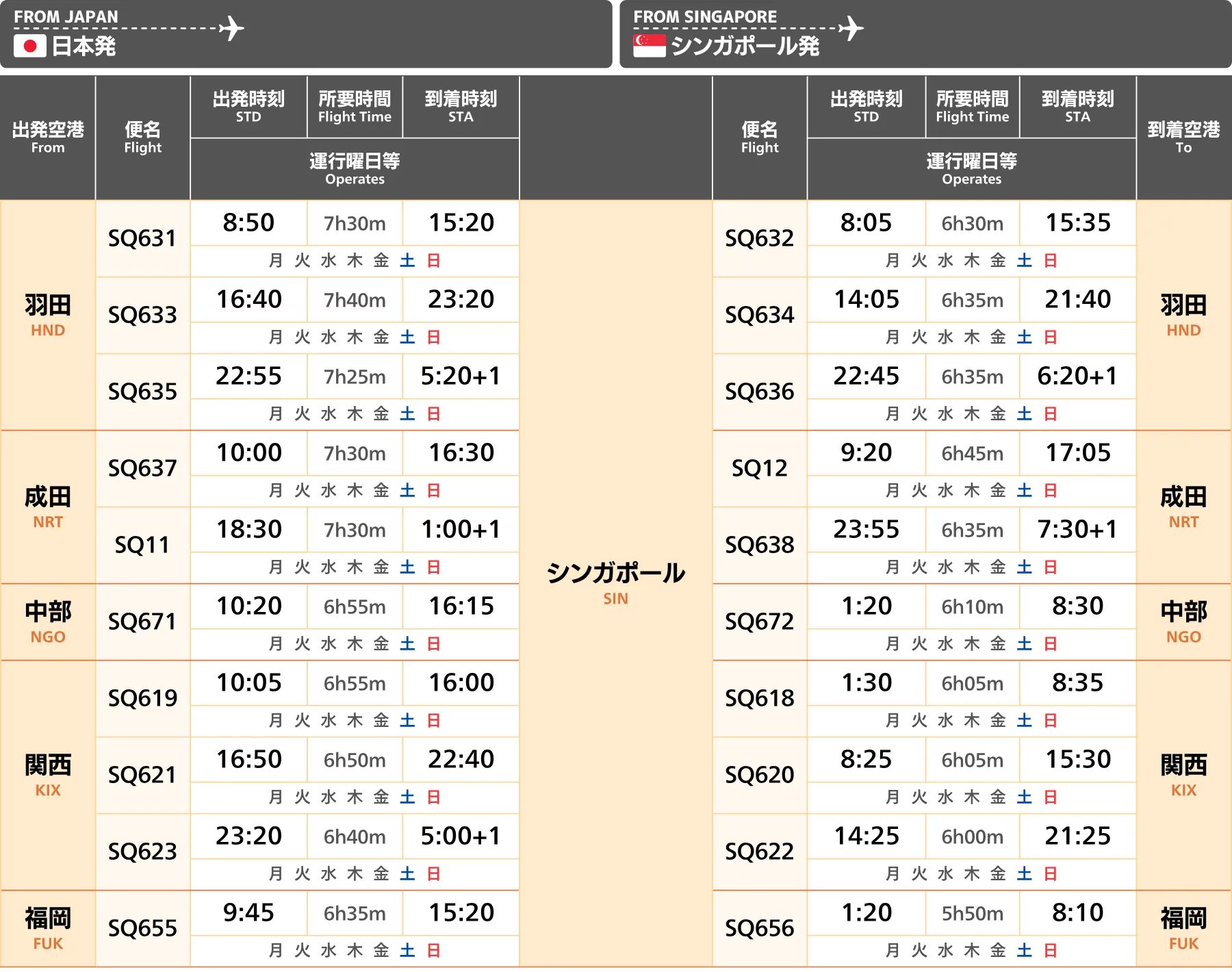 シンガポール|直行便 航空会社時刻表・運航状況【2025年冬季スケジュール】