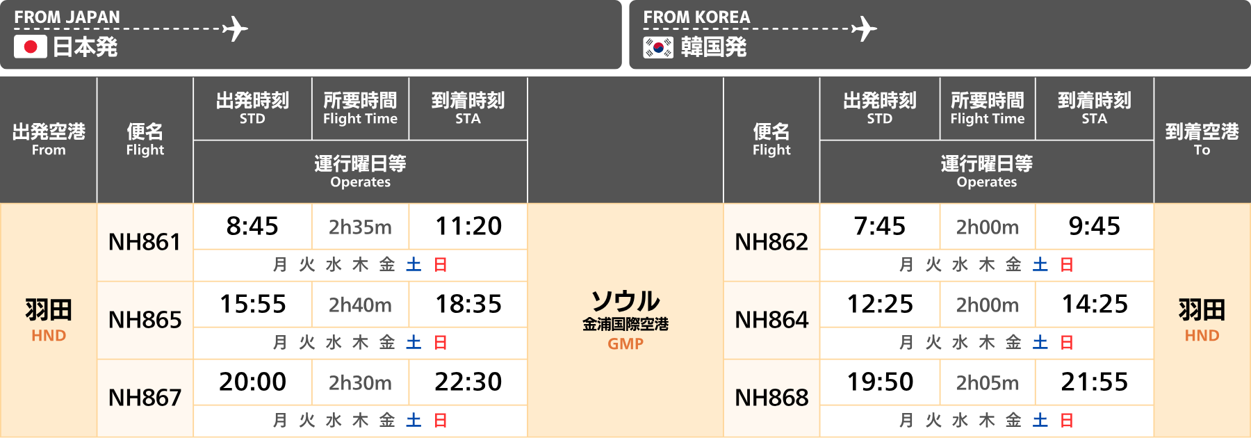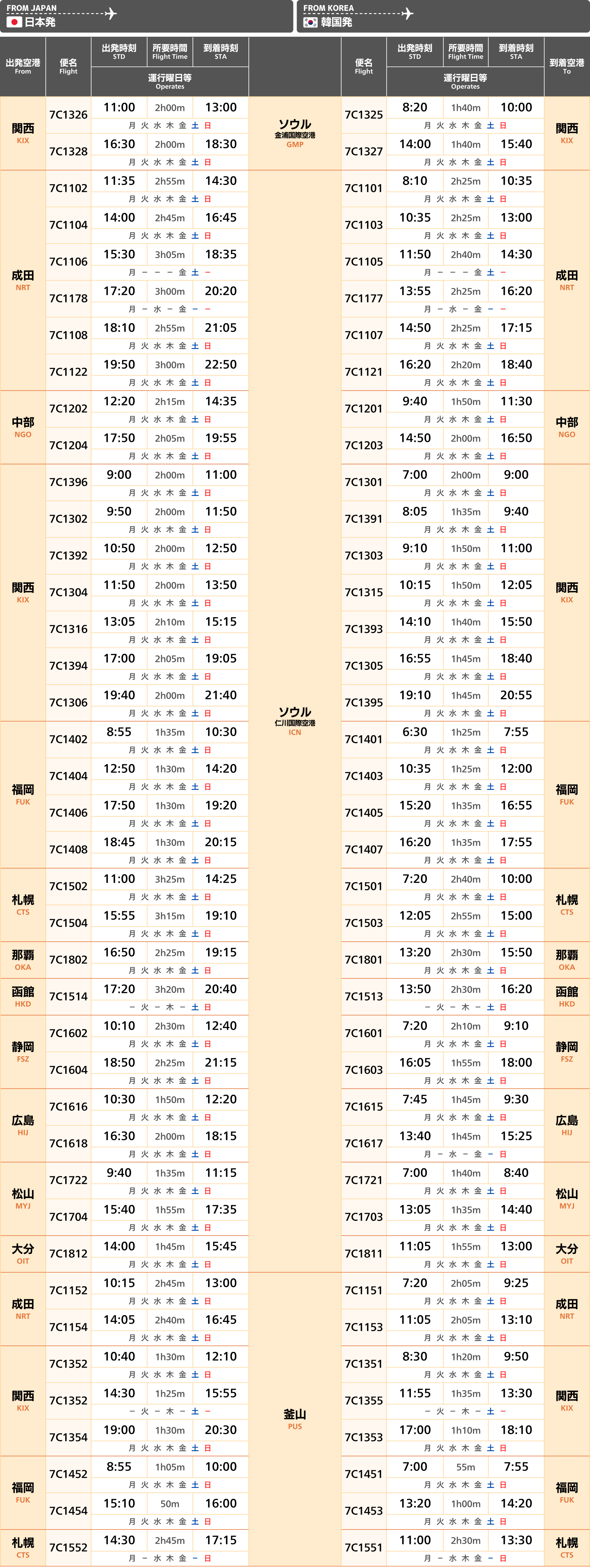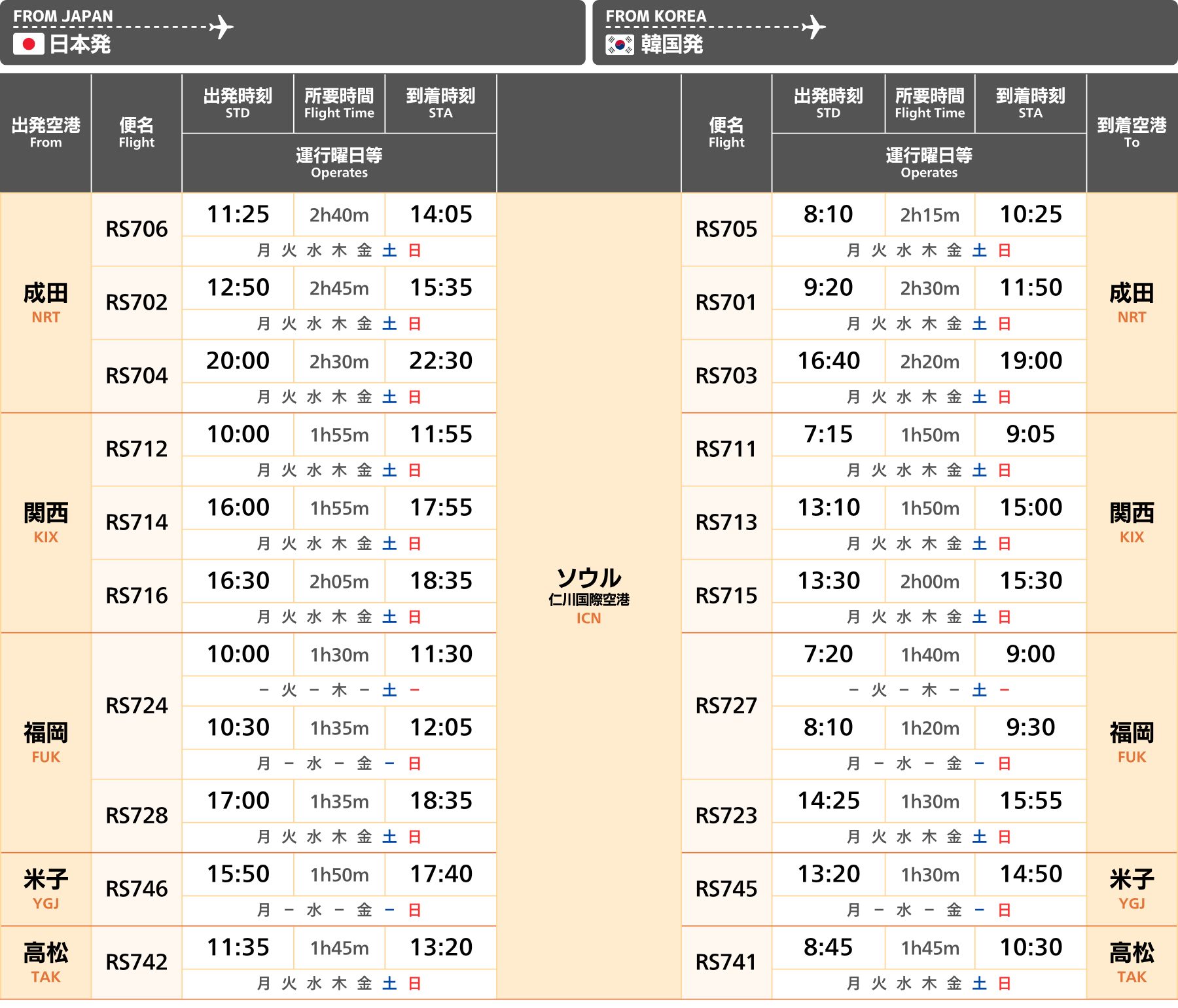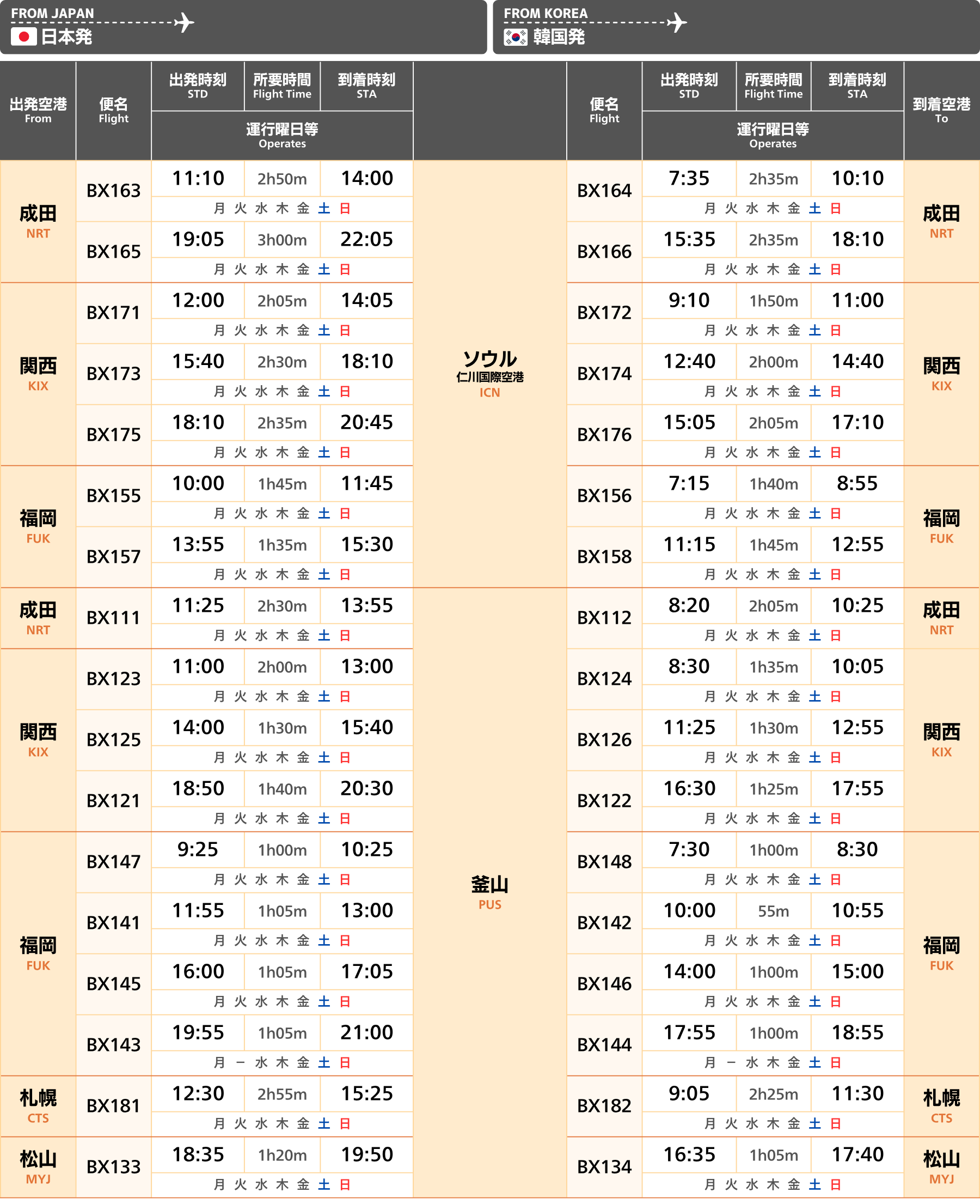 韓国|直行便 航空会社時刻表・運航状況【2025年冬季スケジュール】 日本航空 全日本空輸 大韓航空 アシアナ航空 チェジュ航空 ジンエアー ティーウェイ航空 エアソウル エアプサン イースター航空 エアプレミア エチオピア航空 海外航空券|問い合わせフォーム 海外航空券トップ