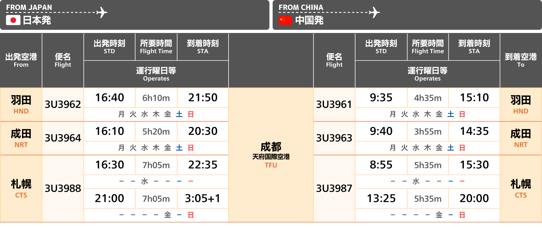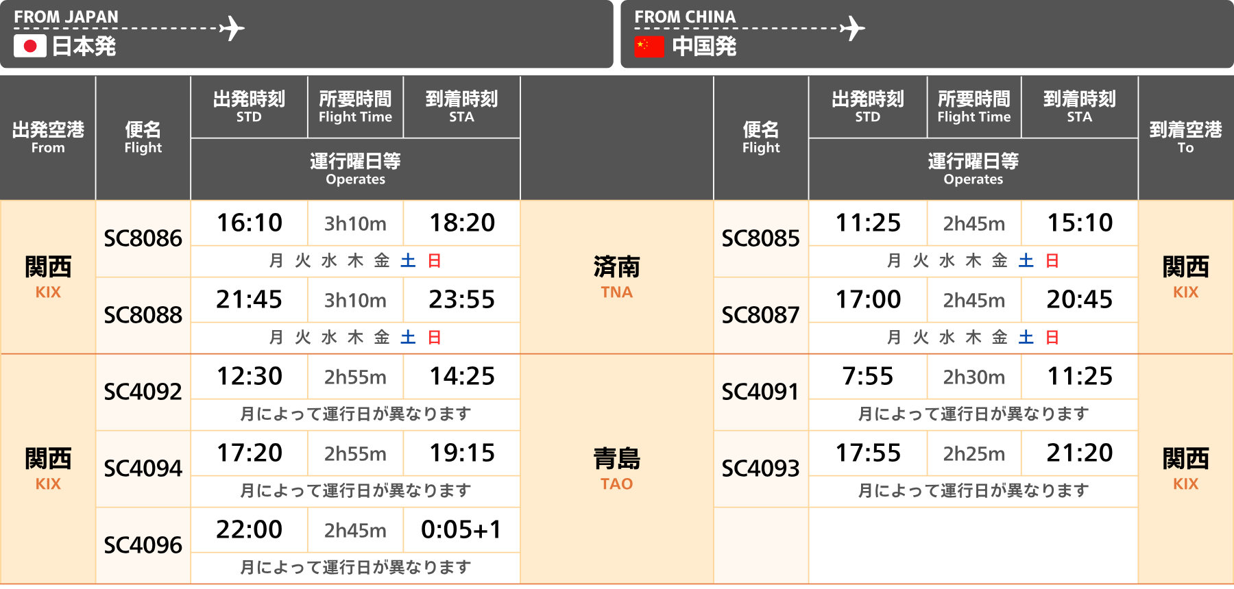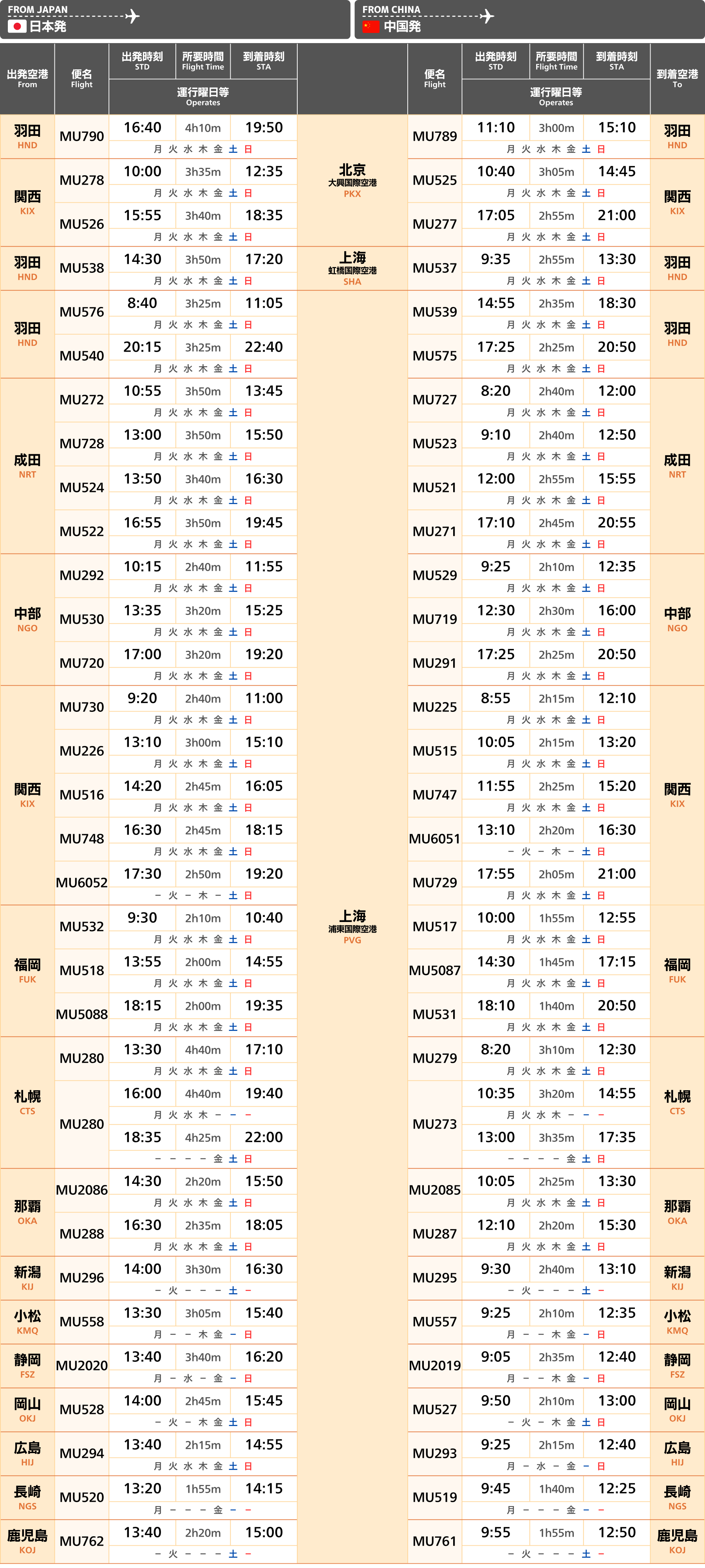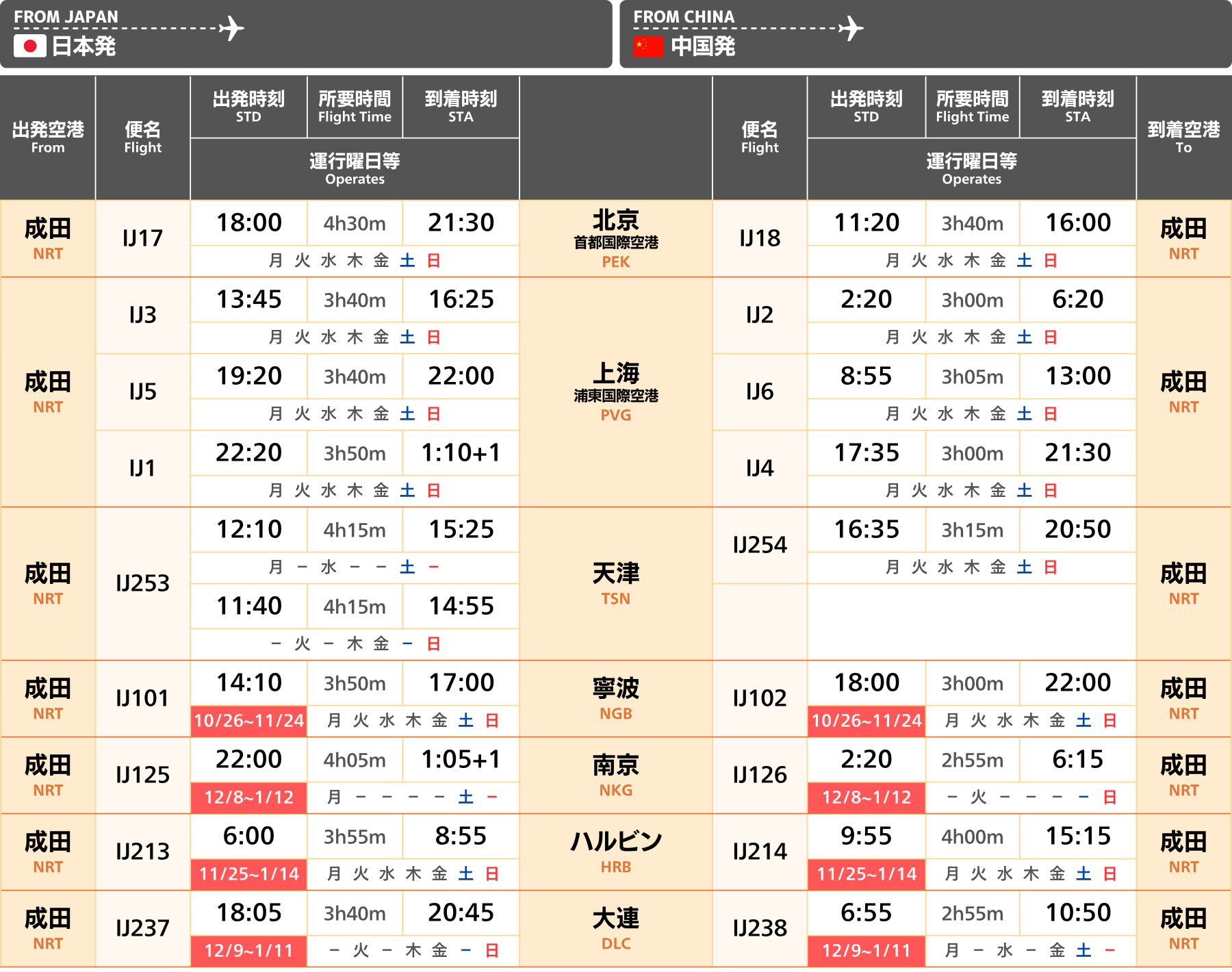 中国|直行便 航空会社時刻表・運航状況【2025年冬季スケジュール】 日本航空 全日本空輸 スプリング・ジャパン 中国国際航空 中国南方航空 中国東方航空 上海航空 吉祥航空 春秋航空 厦門航空 深圳航空 北京首都航空 天津航空 山東航空 海南航空 四川航空 長竜航空 海外航空券|問い合わせフォーム 海外航空券トップ