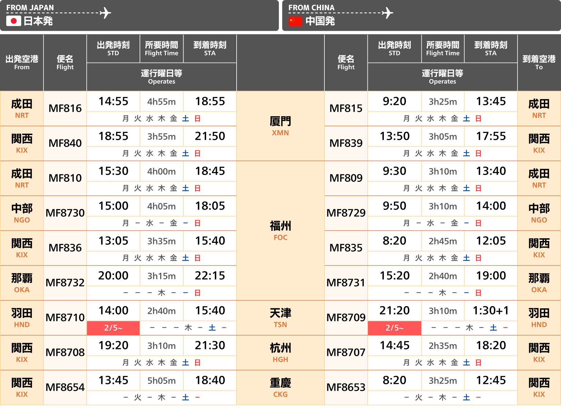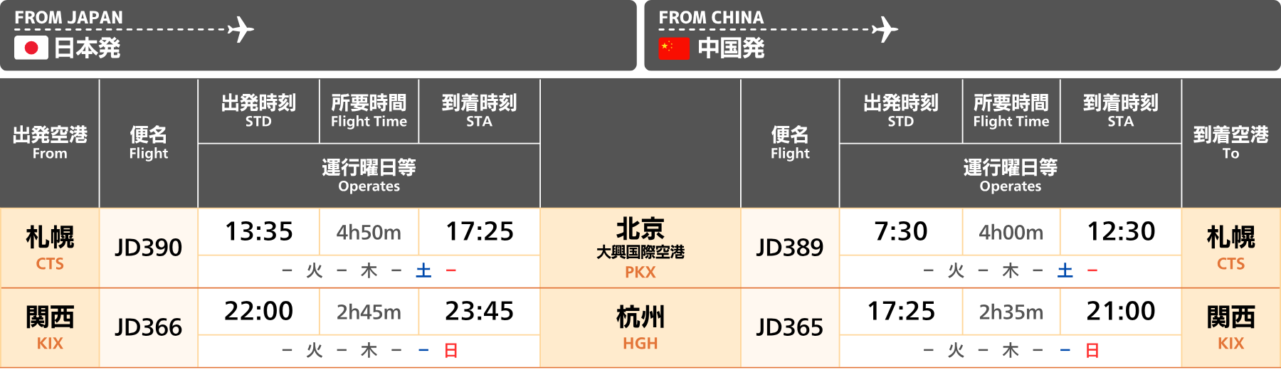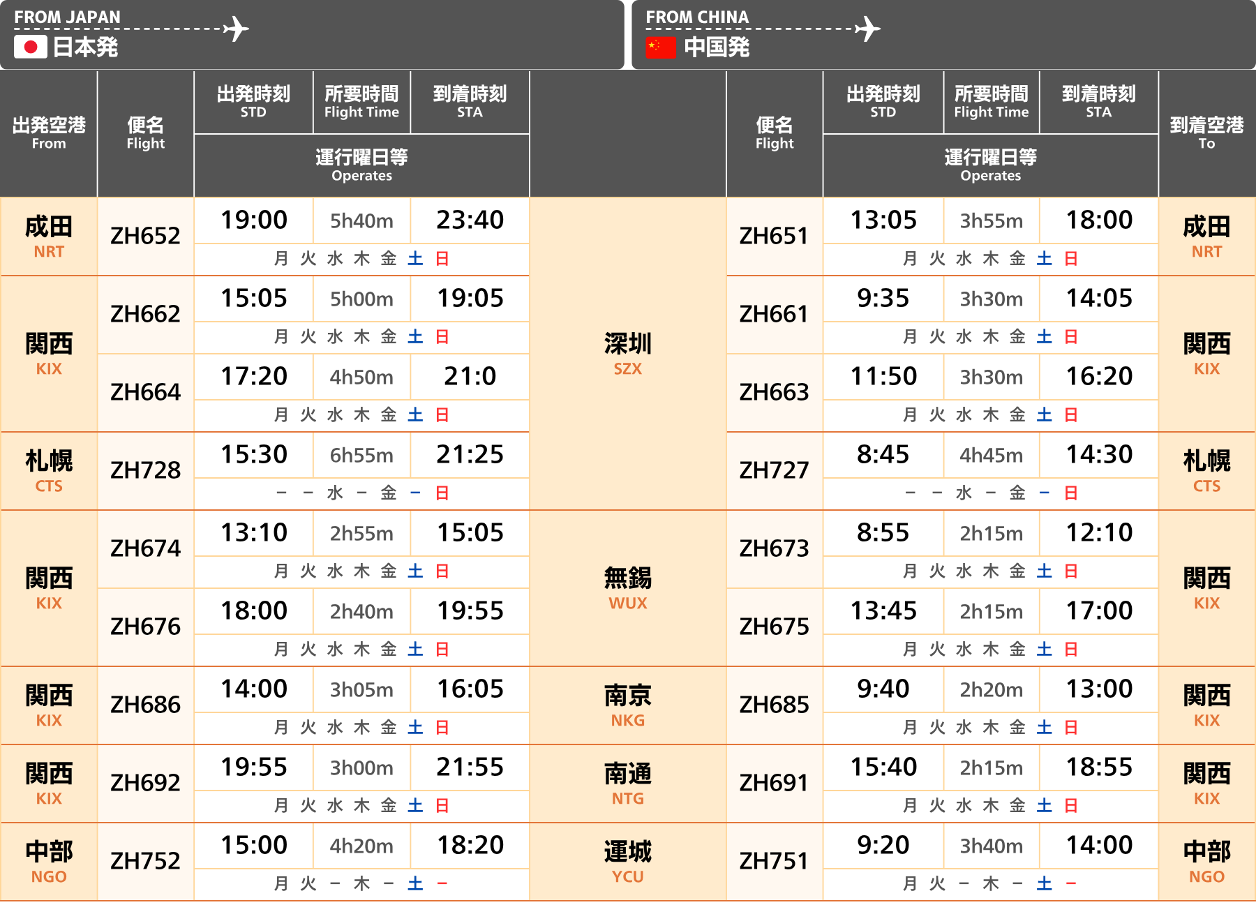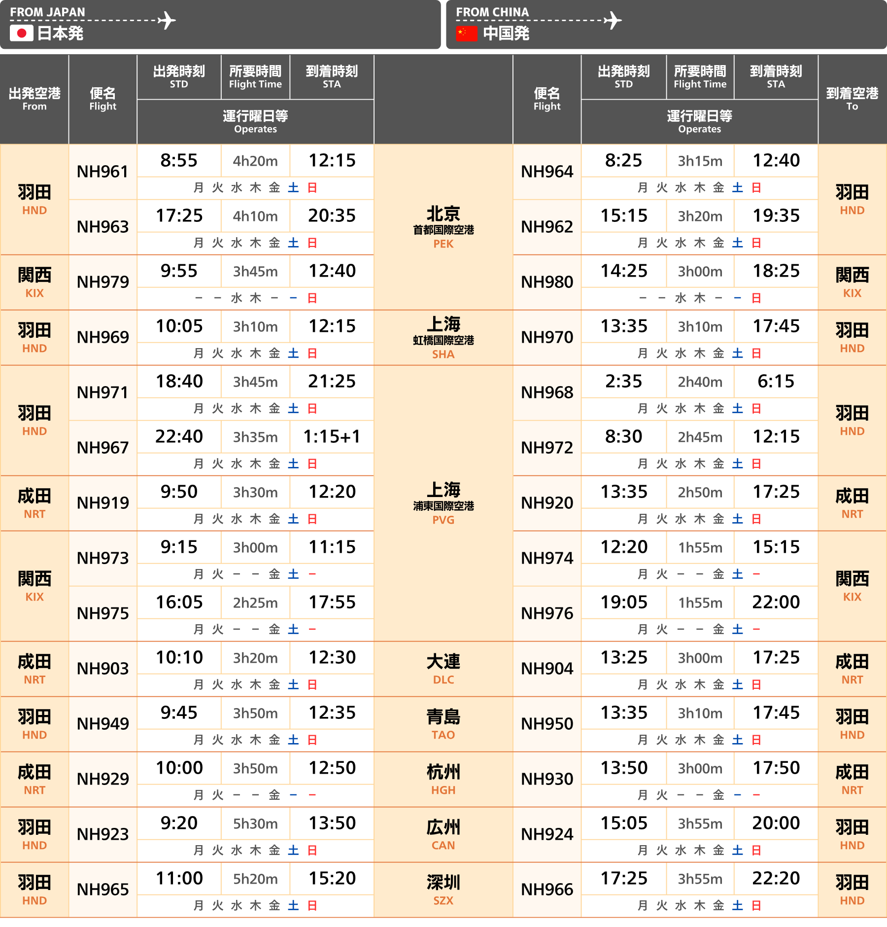 中国|直行便 航空会社時刻表・運航状況【2025年冬季スケジュール】 日本航空 全日本空輸 スプリング・ジャパン 中国国際航空 中国南方航空 中国東方航空 上海航空 吉祥航空 春秋航空 厦門航空 深圳航空 北京首都航空 天津航空 山東航空 海南航空 四川航空 長竜航空 海外航空券|問い合わせフォーム 海外航空券トップ