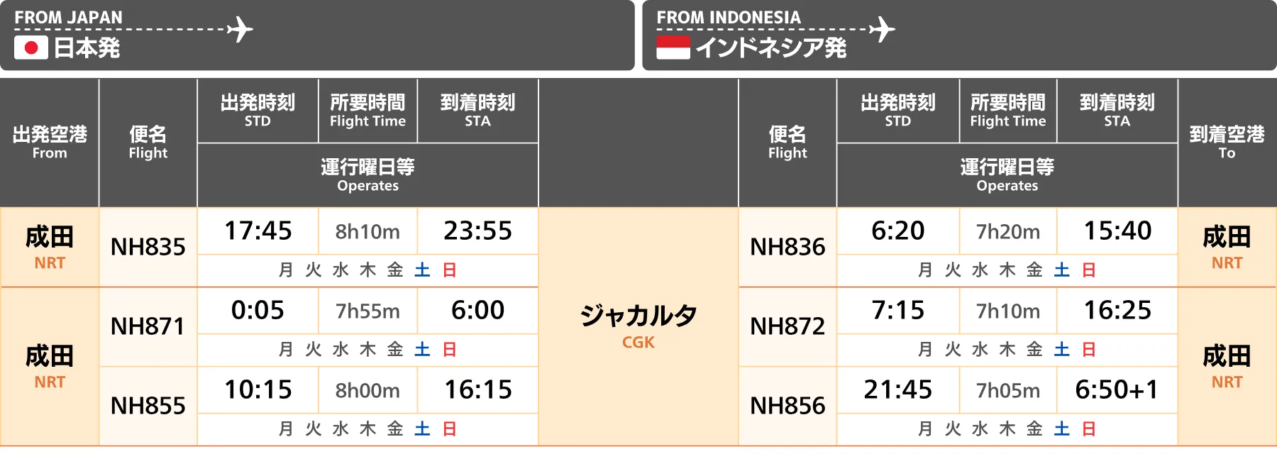 インドネシア|直行便 航空会社時刻表・運航状況【2025年冬季スケジュール】