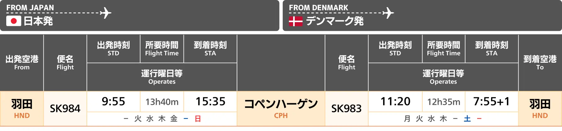 デンマーク|直行便 航空会社時刻表・運航状況【2025年冬季スケジュール】
