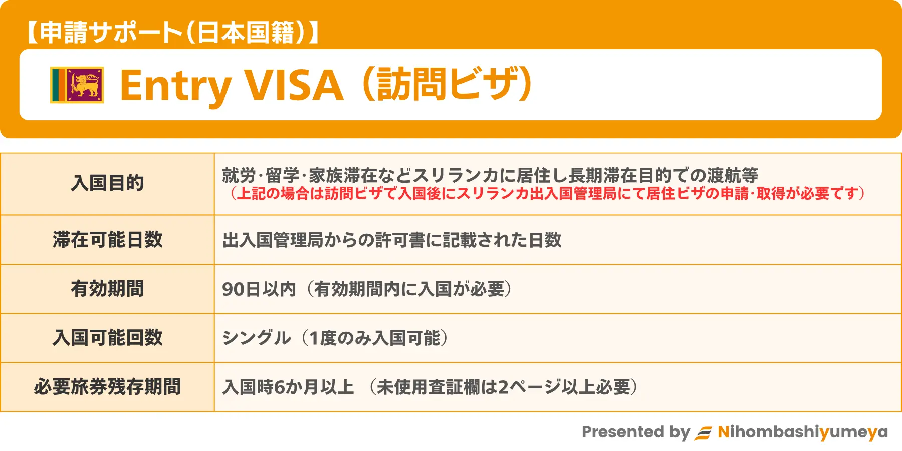 弊社ではスリランカ訪問ビザ申請サポートを下記の通り行っております。