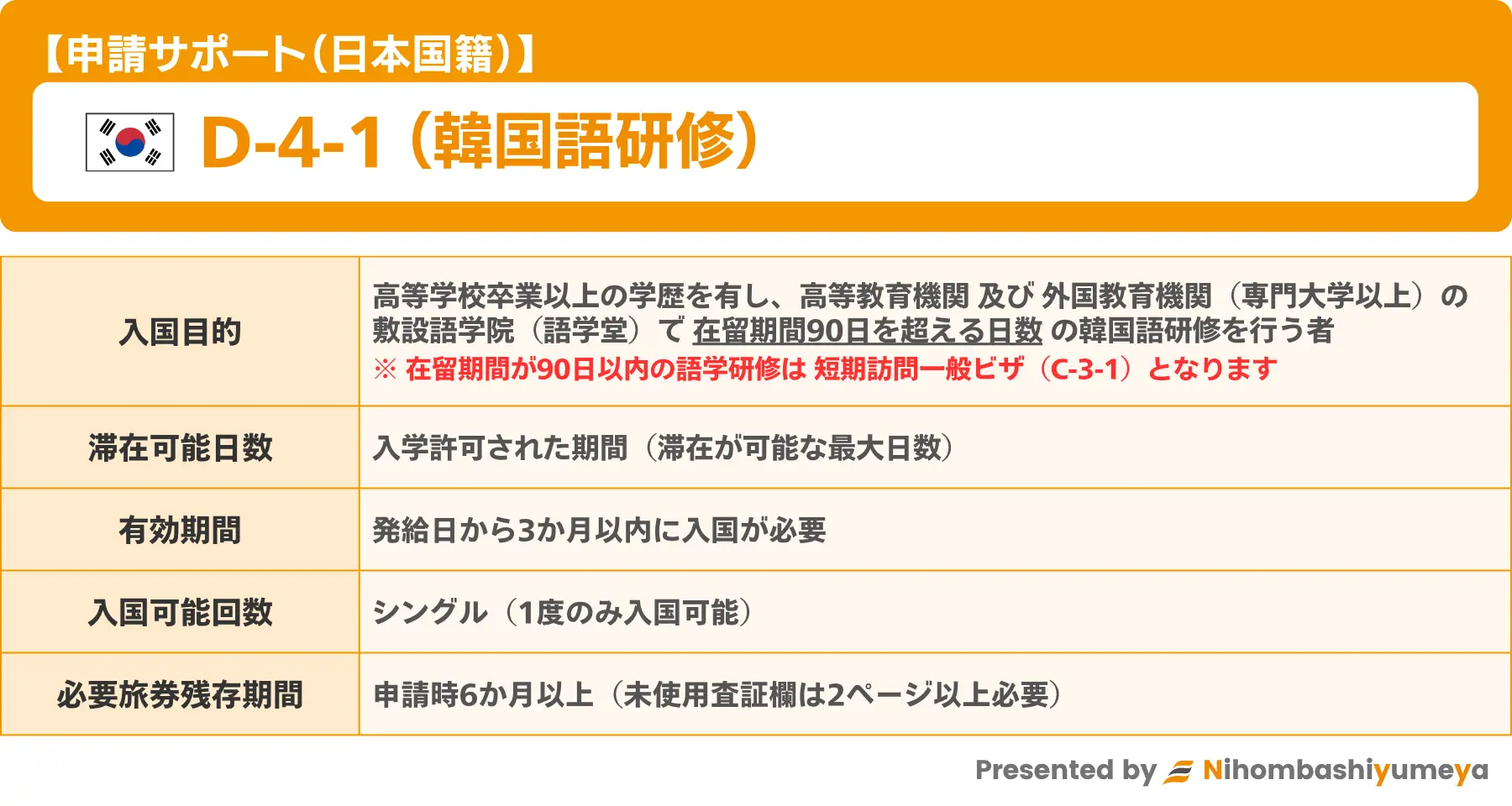 韓国 韓国語研修ビザ【D-4-1】申請サポート