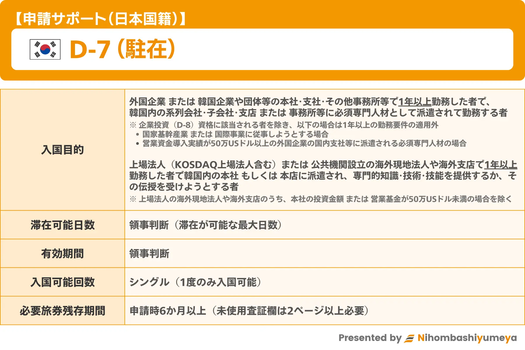 韓国 駐在ビザ【D-7】申請サポート