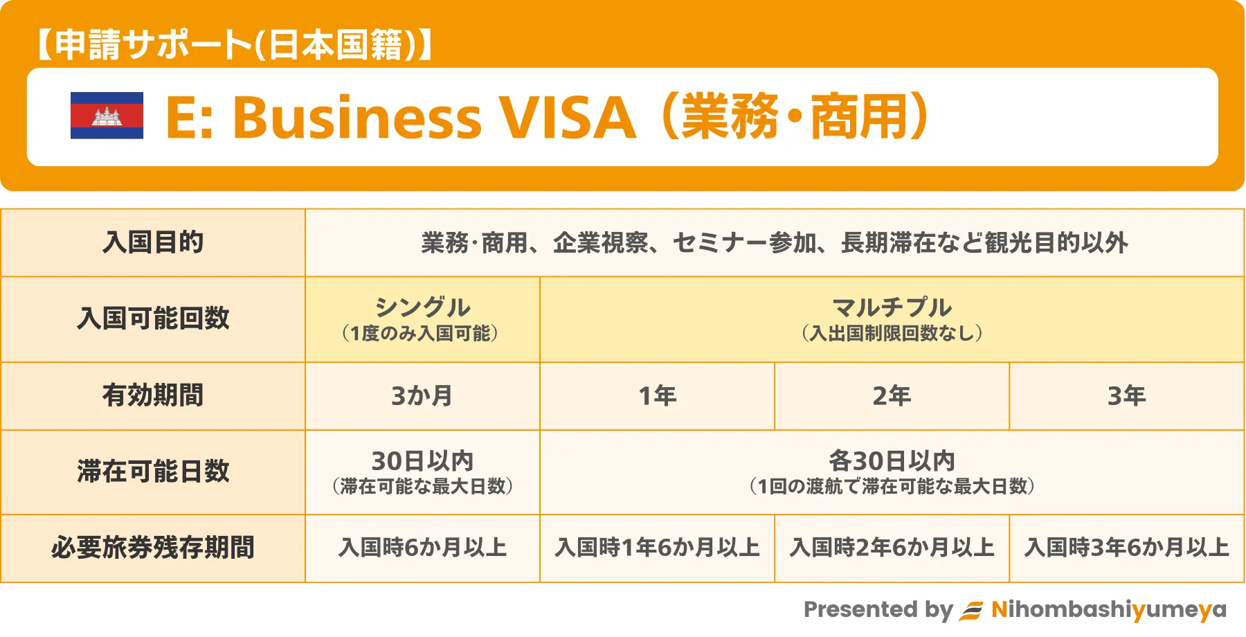 弊社ではカンボジア商用・業務ビザ申請サポートを下記の通り行っております。