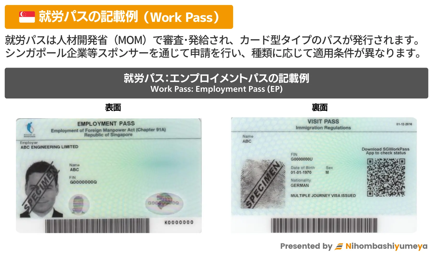 ただしエンプロイメントパス(EP)や Sパス等の就労パスは現在のところ、従来のカード型タイプのパスが発行されています。