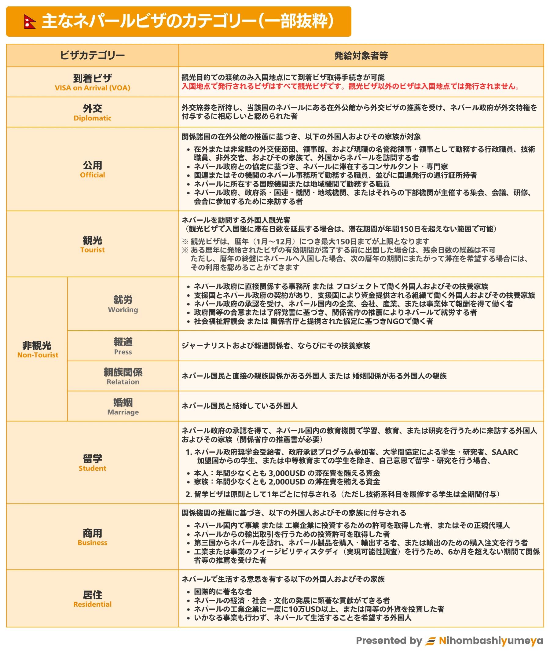 手続や規則に関する最新の情報については、駐日ネパール大使館、ネパール政府移民局ウェブサイト等もご確認ください。