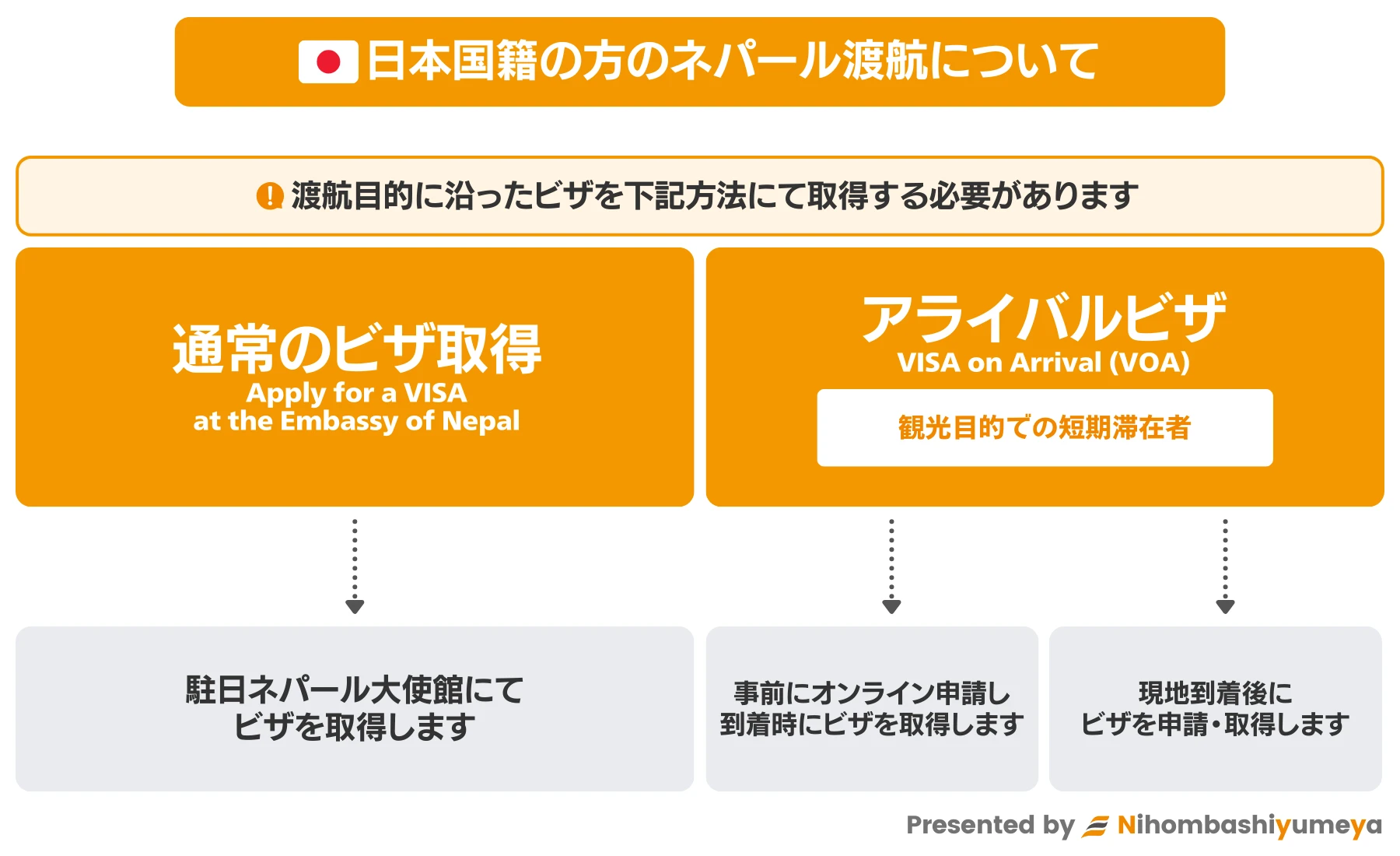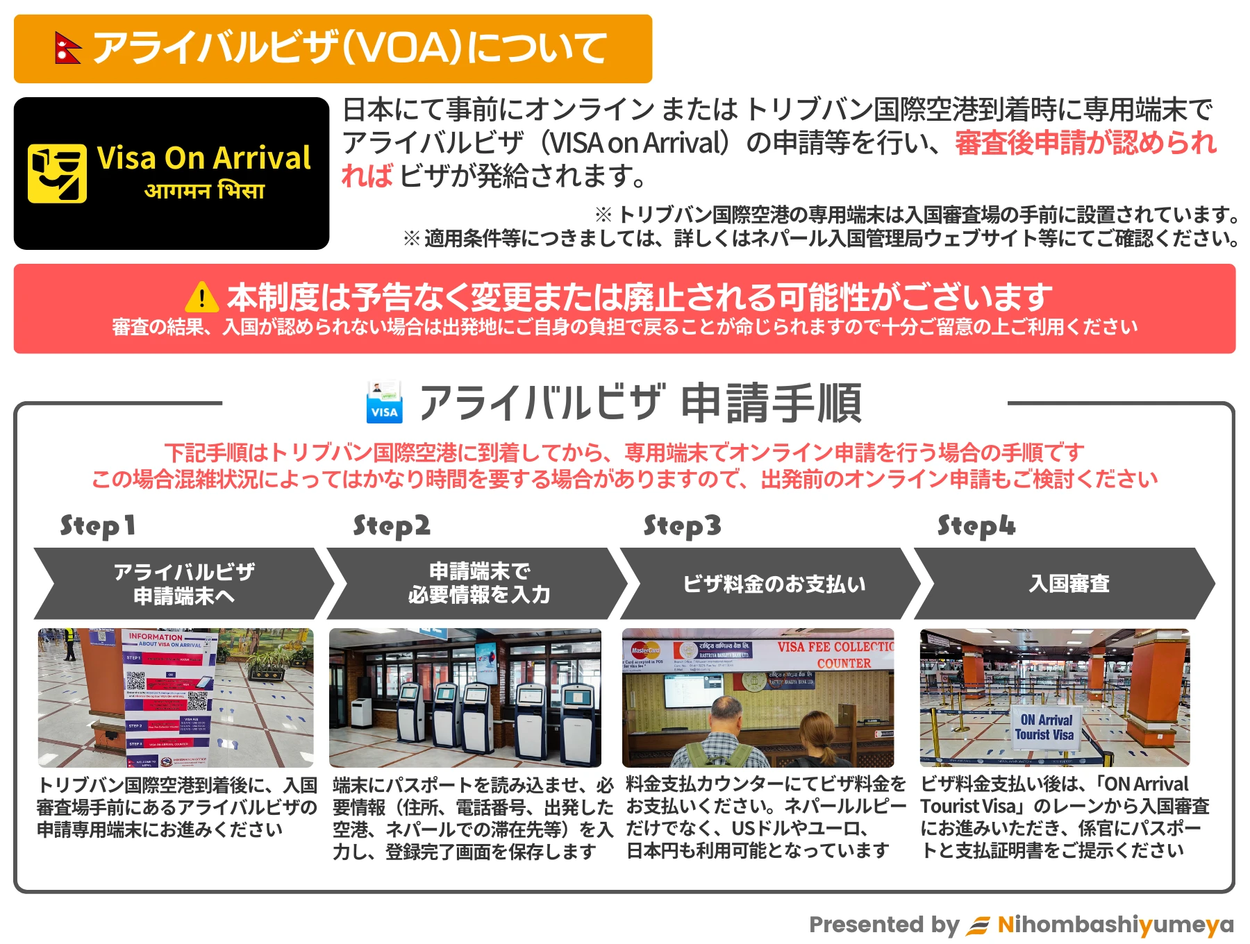 なお、審査の結果ネパール入国が認められない場合や制度自体が予告なく変更される場合がございますのでご留意ください。