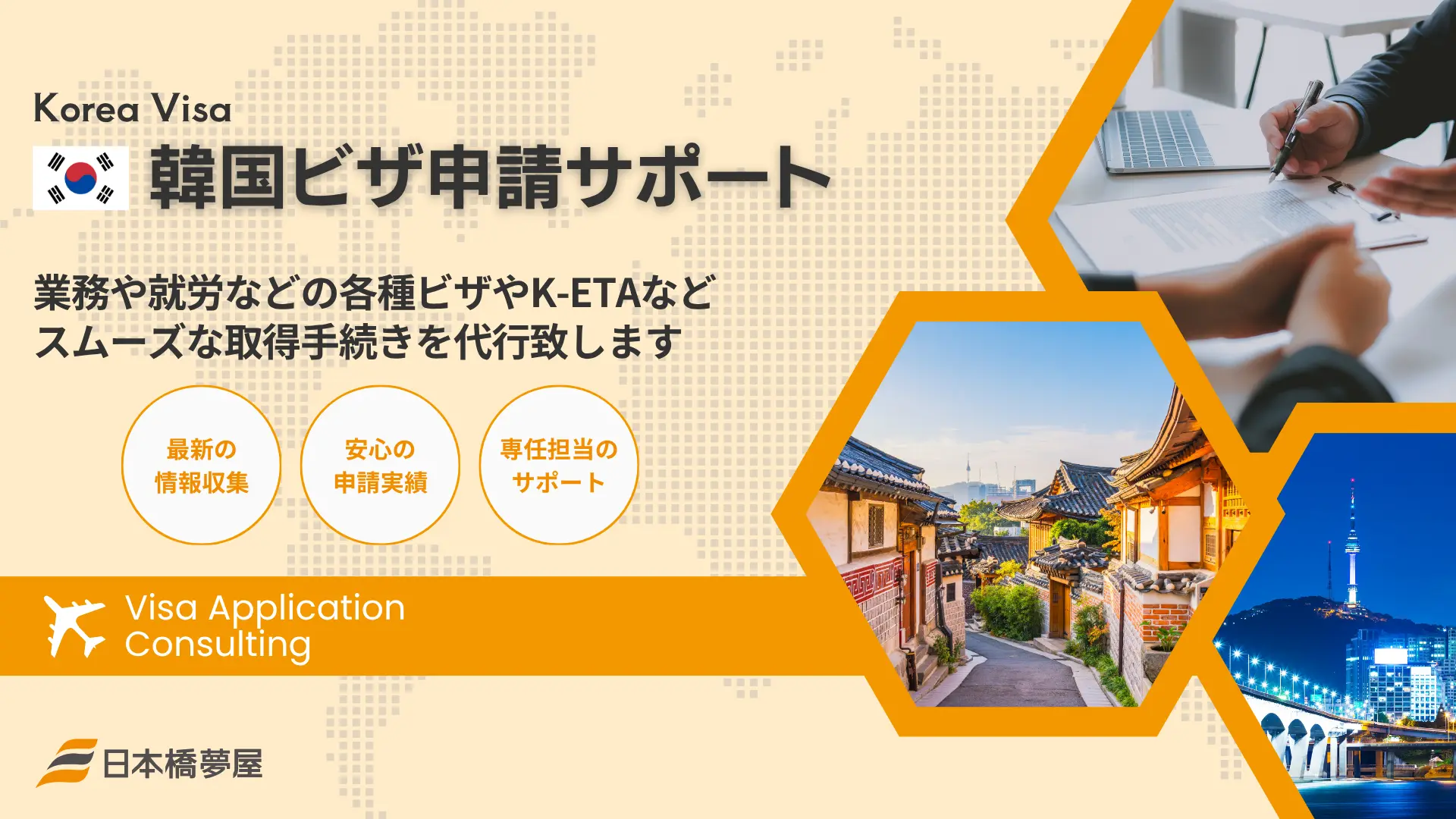 日本国籍の方が韓国に渡航する場合、渡航目的に沿った電子渡航認証(K-ETA)または ビザ(査証)取得が必要となります。